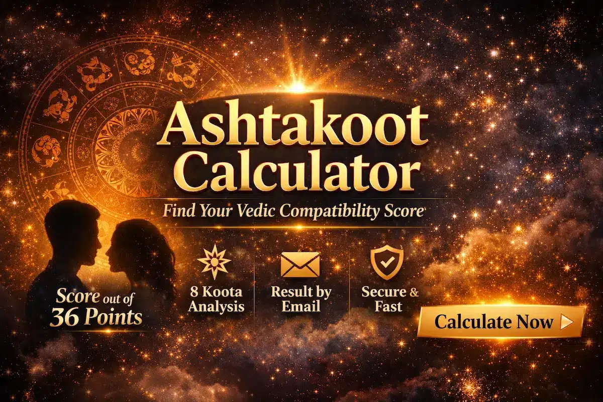 An Ashtakoot calculator is a Vedic astrology tool that compares two birth charts and produces a compatibility score out of 36. It does this through eight traditional matching factors, known as the 8 kootas, each measuring a different layer of temperament, instinct, emotional resonance, mental rapport, and life-pattern harmony.